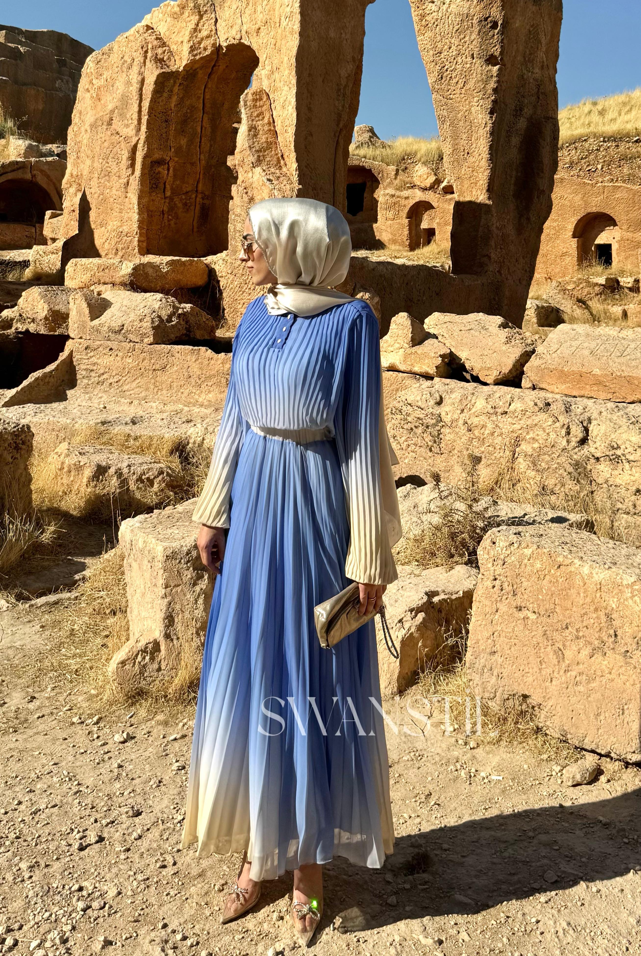 Piliseli şifon kumaştan üretilmiştir.